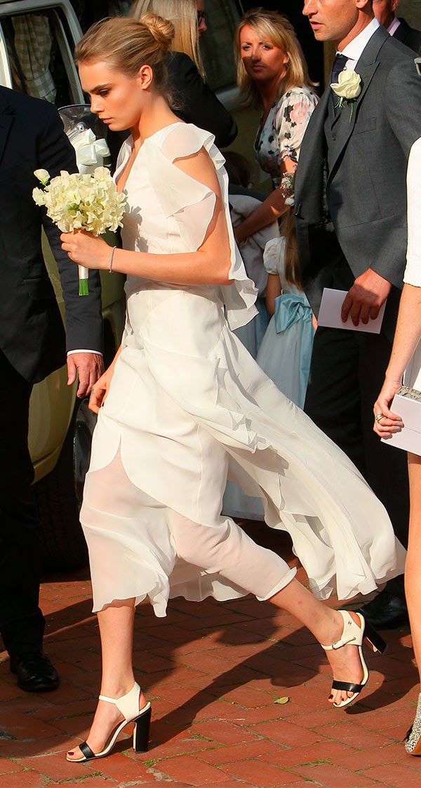 Cara también estuvo toda de blanco, cumpliendo la misma función que Pippa en el matrimonio real de Kate y el Principe William.