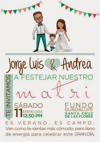 Esa fue la invitación al matrimonio de Andrea y Jorge Luis. Se acuerdan de ellos? En sus invitaciones estaban ellos, una familia en forma de caricatura. Los 3 juntos en el día más especial.