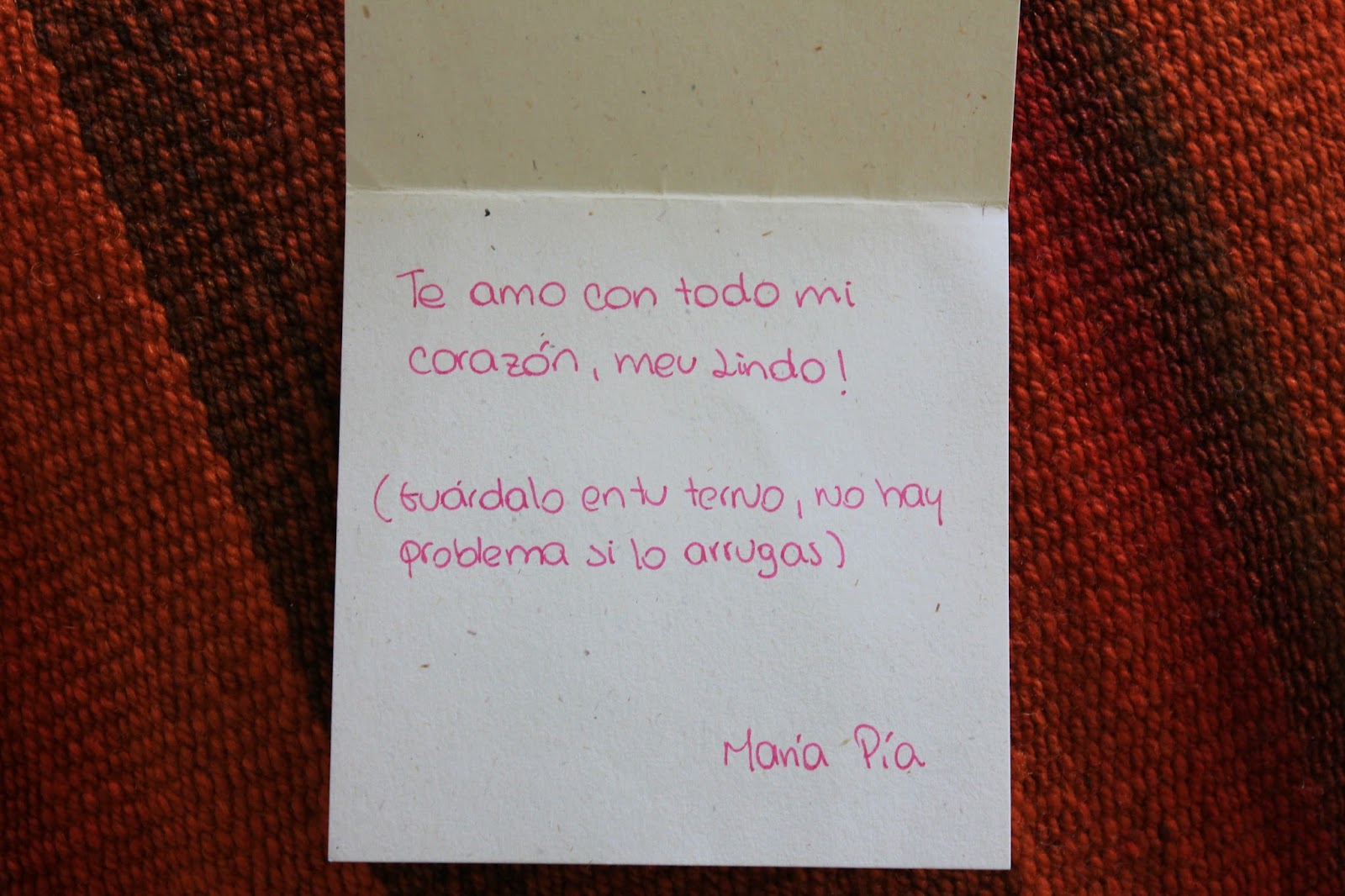 Les cuento que además de llevar la plaquita, le di una misión muy importante: Le dije que cuando llegue al altar, se acerque a Daniel y le de esta notita: