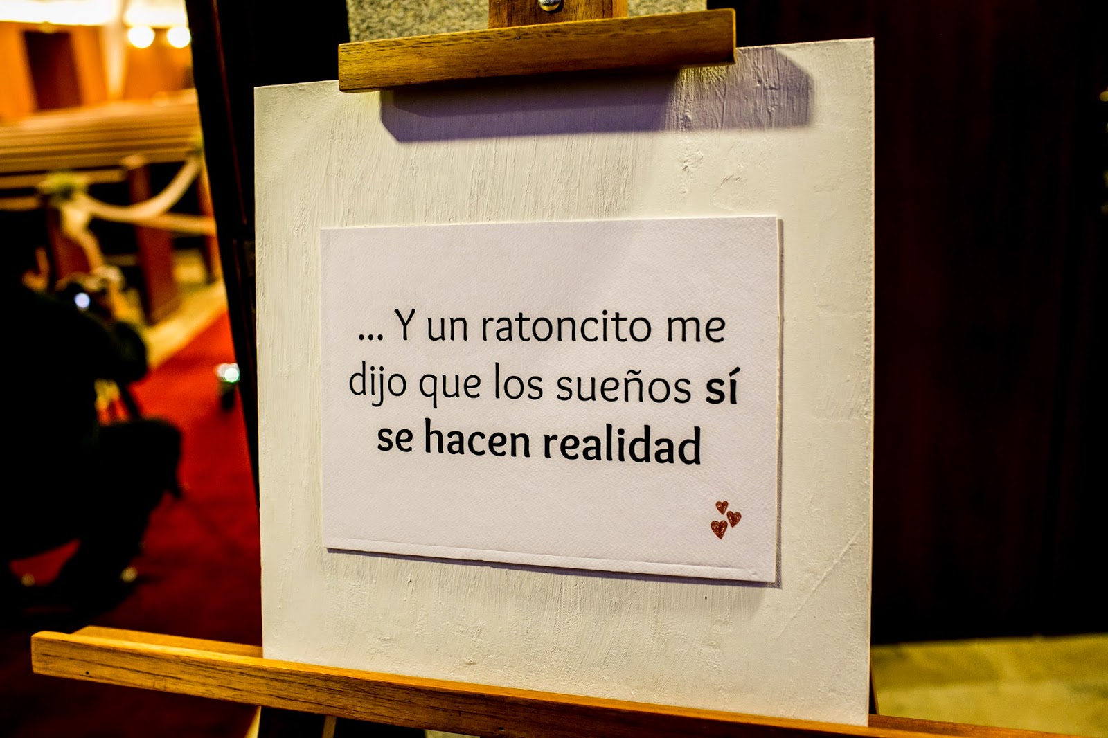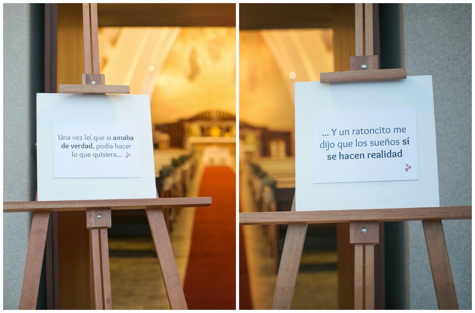 Una de San Agustín: «Ama y haz lo que quieras» y la otro de Walt Disney. Quería que nuestros invitados se envuelvan con nuestra historia, que recuerden que estábamos en el colegio donde pasé 12 años y que fue en Disney que Daniel y yo nos conocímos.